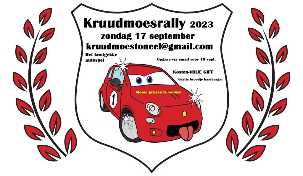 Het gaat weer gebeuren! Het leukste, gezelligste Hilarische autospel van Europa en omstreken! Zondag 17 september, De 3e knotsgekke Kruudmoesrally! Opgave alleen via email kruudmoestoneel@gmail.com (bij opgave krijgt u alle info toegestuurd en doorgeven met hoeveel personen u meedoet ivm catering) Kosten zijn, VRIJE GIFT en als u zich na afloop meld bij het buurtgebouw van Buurtvereniging Het Kruidenveld Klazienaveen, maken we het gezellig en krijgt u van ons een gratis broodje hamburger!